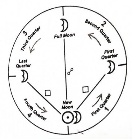 | 태양에서 0~90도 | 신월 ~ 상현 | 차오르는 달 (빛의 증가) 인간관계 증가 |