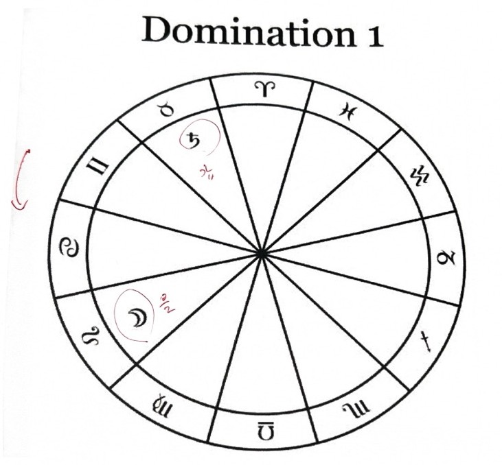 도미네이션은 지배, 지배적인 이라는 의미로 오버컴에 속하는 에스펙트이다(주종관계). 행성A가 행성B의 10번째 사인에 위치(스퀘어)하면 도미네이션이라고 부른다.