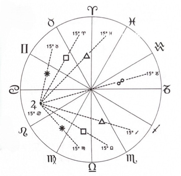 두 행성이 일정 각도만큼 떨어져 있으면 애스펙트를 이루게 되고, 두 행성은 서로 영향을 주고 받는다.